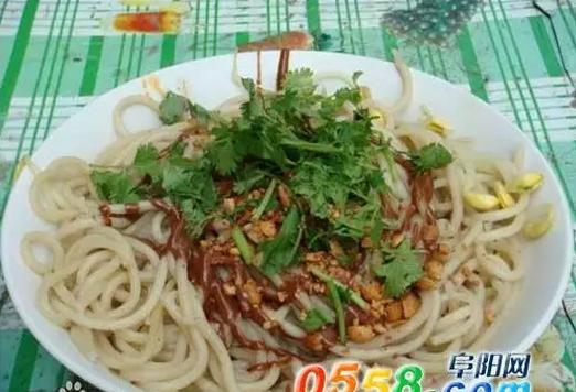 阜阳有一种极具特色的面条,当地人把这种面条叫着“格拉条”。多少年来,这种既经济又实惠的风味小吃,被阜阳人视为本地的一种特色小吃。一锅沸水煮面捞出,几勺调料,几样佐料,一碗香辣的格拉条就放在了你的面前。不过,在吃 “格拉条”的时候,你最好向店主讨要一碗豆芽汤,吃一口面,喝一口汤,这样吃起来倍感爽口,外地人很难想象,一碗普普通通的面食。竟能让阜阳人吃的轰轰烈烈,惊天动地,而不能忘怀。
