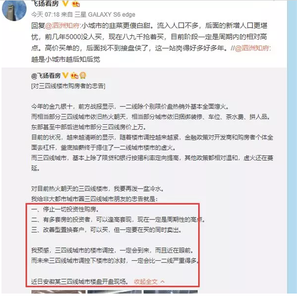合肥大V“飞扬看房”建议三四线城市购房者停止一切投资性购房