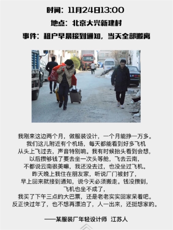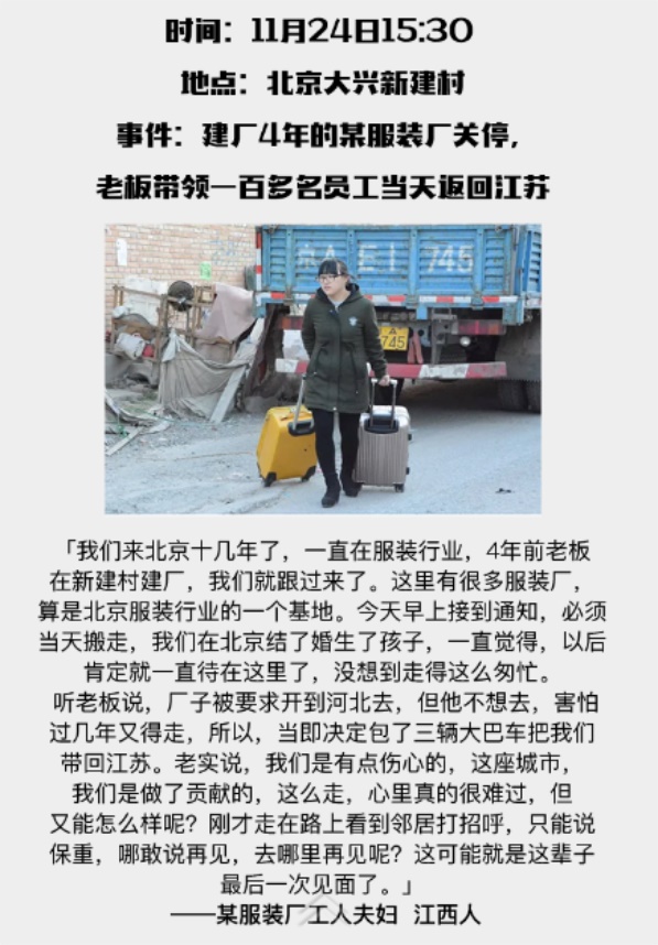 因为大兴的一场火灾事故,北京这个神奇的首都,开始了大规模的外来人口整治,拉开了在京漂泊和拼搏的打工一族的大迁移序幕!看完了么?这就是现实的!